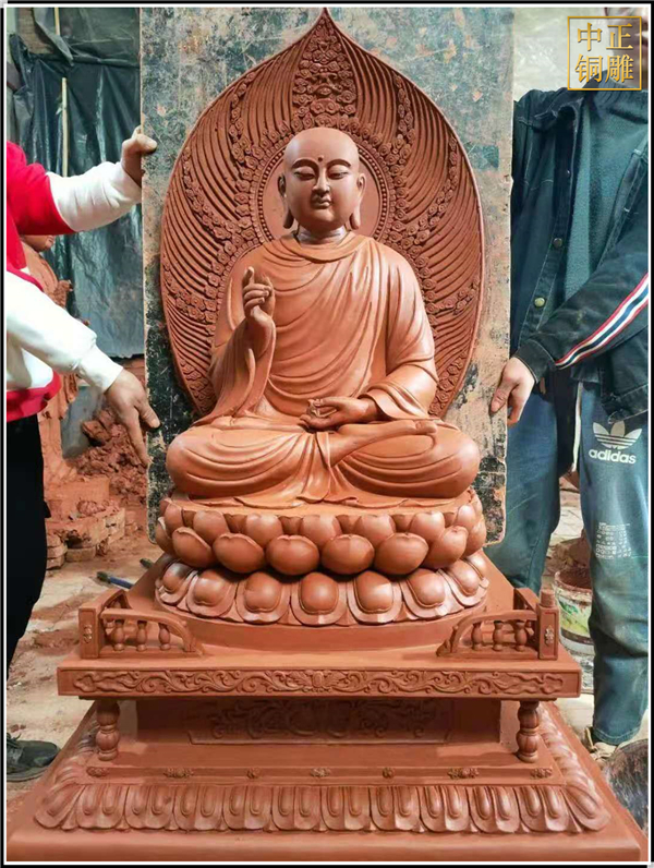 這件1.6米高的地藏王銅像,現(xiàn)已完成發(fā)貨安裝,從泥塑制作到上色歷時(shí)兩個(gè)月的時(shí)間,據(jù)《地藏菩薩本愿經(jīng)》載:其為釋迦既滅后,彌勒未生前,眾生賴以救苦,自誓必盡度六道眾生,始愿成佛的菩薩。相傳其顯靈說(shuō)法的道場(chǎng)在安徽九華山。作為胎藏界地藏院的菩薩,形象為身披袈裟,掛瓔珞、戴寶冠,手持寶珠及錫杖,呈菩薩或沙門狀。九華山月身寶殿內(nèi)設(shè)七級(jí)木質(zhì)寶塔,每層佛龕八座,供奉地藏全身從像。大足177號(hào)地藏變相窟塑地藏菩薩中坐,左右各二化身像,造型古樸渾厚,線條洗練,突出了憨厚慈悲的性格特征。敦煌莫高窟五代、宋代窟的甬道頂部均繪有地藏像,體態(tài)豐滿,衣飾華麗,色彩濃艷,形式多變。唐縣中正銅雕工藝品廠是鑄銅雕塑的廠家。擁有設(shè)計(jì)師和雕塑團(tuán)隊(duì),引進(jìn)的鑄造技術(shù),開(kāi)發(fā)出一系列的銅制工藝品。