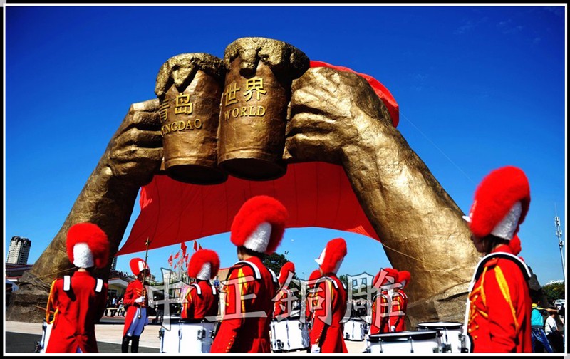 安裝于山東省青島市區(qū)金沙灘國際啤酒節(jié)黃島廣場,雕塑總高13.8米,重35噸,歷時3個月完工。青島國際啤酒節(jié)始創(chuàng)于1991年,每年在青島的黃金旅游季節(jié)8月的第二個周末開幕,為期16天。節(jié)日由國家有關(guān)部委和青島市人民政府共同主辦,是融旅游、文化、體育、經(jīng)貿(mào)于一體的國家級大型節(jié)慶活動。是亞洲的啤酒盛會。如今,啤酒節(jié)已經(jīng)成為彰顯青島城市個性優(yōu)勢與魅力的盛大節(jié)日,以啤酒為媒介,展現(xiàn)了青島啤酒公司和城市。我們此次安裝的雕塑為此隆重節(jié)日再添亮麗風景。